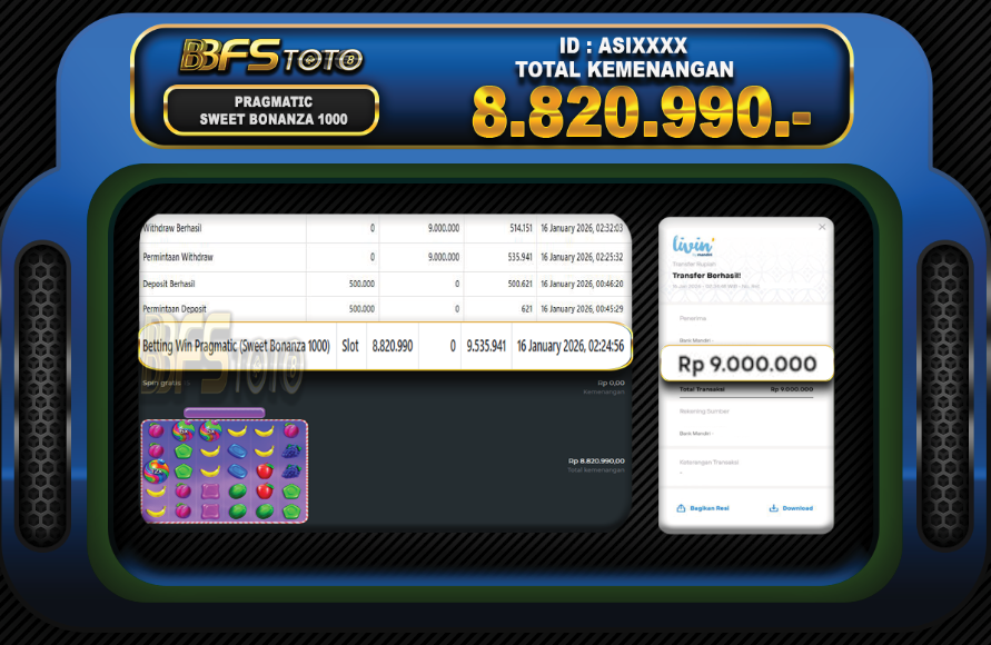 • SWEET BONANZA 1000 – BUKTI JACKPOT SLOT BBFSTOTO