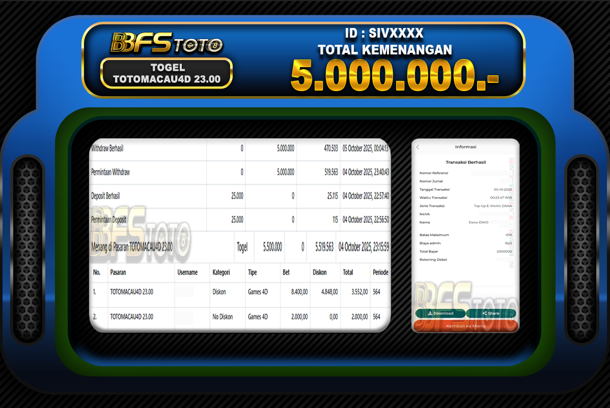 TOGEL TOTOMACAU4D 23.00 – BUKTI JACKPOT BBFSTOTO